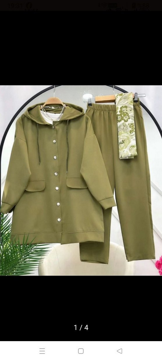 1 kez giyildi 42 44 uyumlu pantolon takım 75 kiloya kadar çok rahat olur Kadınlar için rahat kesim, uzun boy haki renkli takım. Düğmeli kapüşonlu pantolon beli lastikli altından oluşur. Sentetik kumaştan, günlük kullanım için uygun.