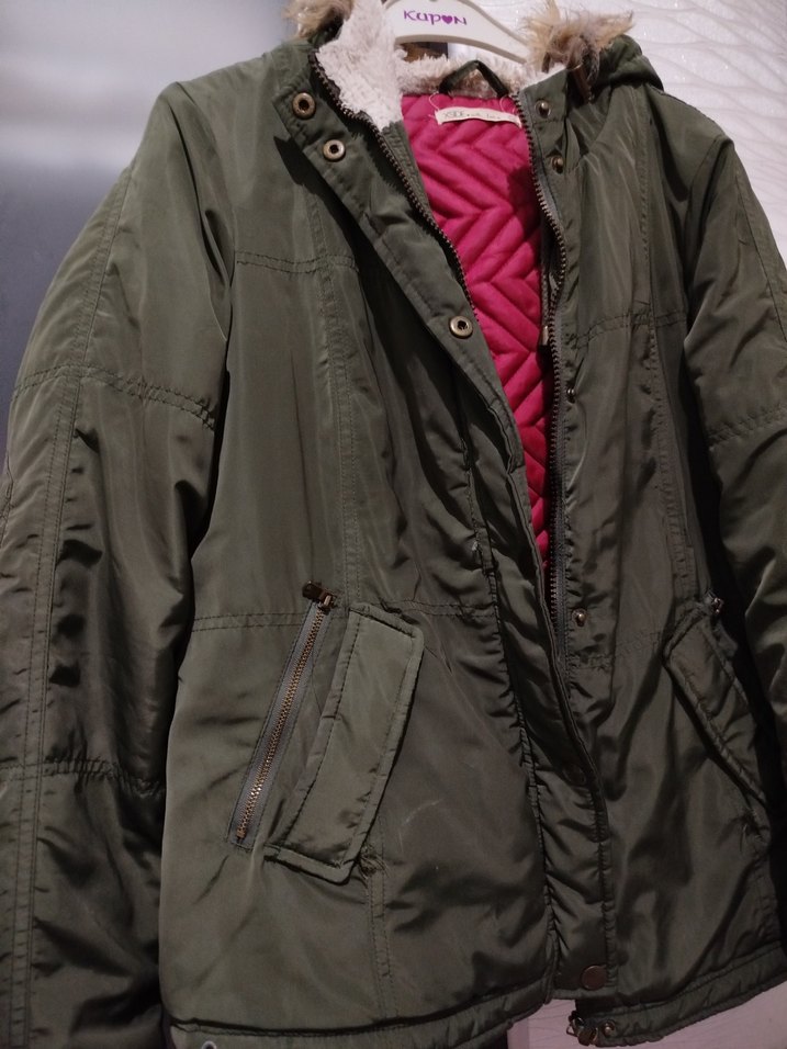Kadınlar için kapüşonlu, fermuarlı ve normal boy midi mont. Düz gri renkte, sokak tarzına uygun, sentetik yumuşak kumaştan üretilmiştir. Fermuarlı cepleri ve askılı kolları vardır.