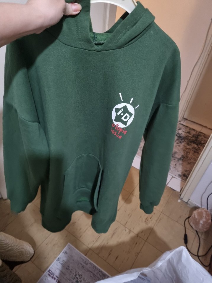 Kadınlar için koyu yeşil renkte, uzun kollu, yuvarlak yakalı ve bol kesim sweatshirt. Baskılı detaylı, yumuşak, sıcak tutan kumaştan üretilmiştir. Günlük rahat kombinler için uygun.