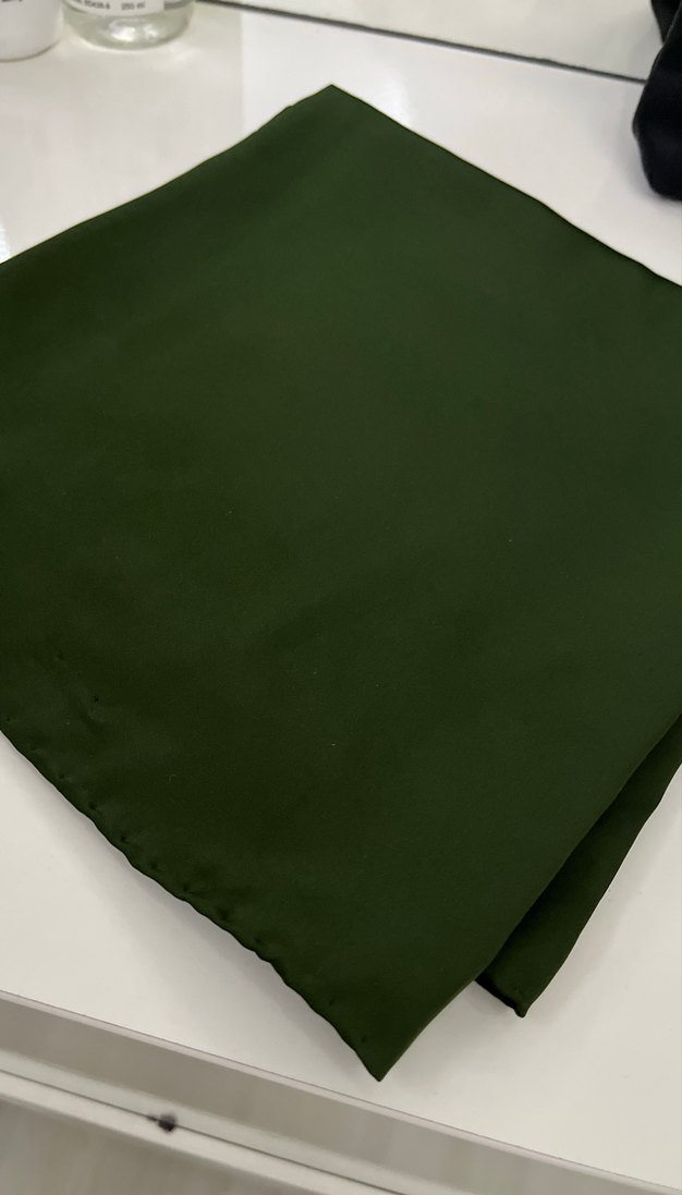 Kadınlar için koyu haki renkte, saten görünümlü, katmanlı tasarıma sahip şal. Minimalist sokak modası için uygundur.