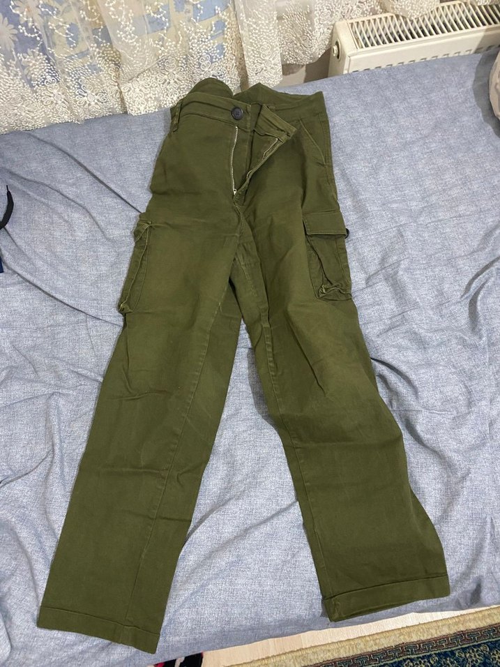 Kadın Haki Kemerli Bol Kesim Pantolon