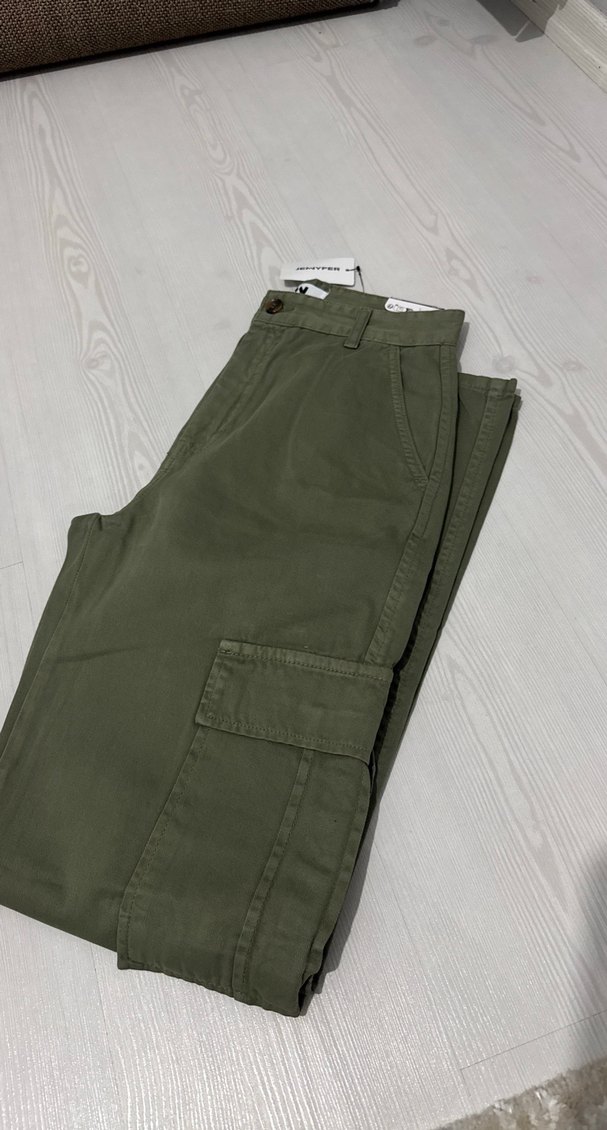 Kadınlar için haki renkte, kemerli ve midi boyda, sentetik kumaştan üretilmiş, desen içermeyen günlük kullanıma uygun rahat pantolon.