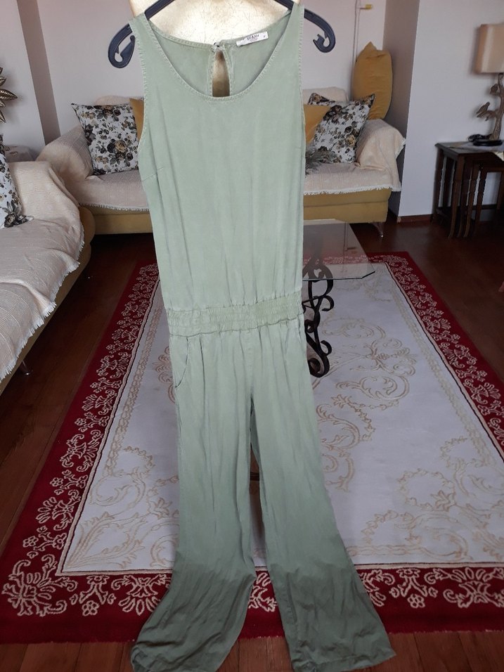 Kadın Haki Keten Bol Kesim Uzun Tulum
