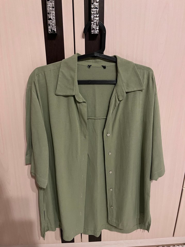 Kadın haki keten gömlek, rahat kesim, kısa kollu, düğmeli ve yakalı, günlük sokak stiline uygun. Orjinal bir markanındı fakat etiketleri kesmiştim hatırlamıyorum