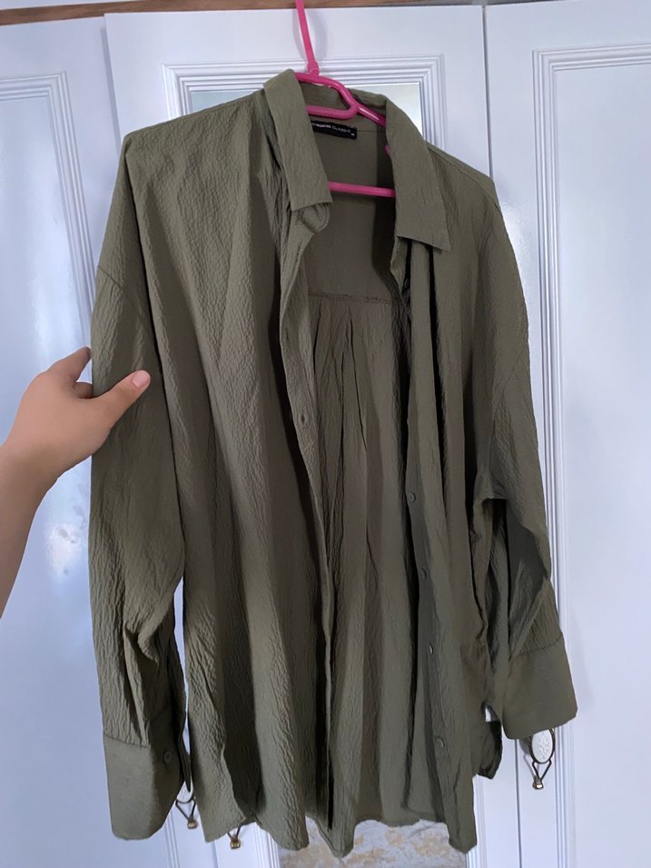 Kadın Haki Keten Düğmeli Salaş Gömlek