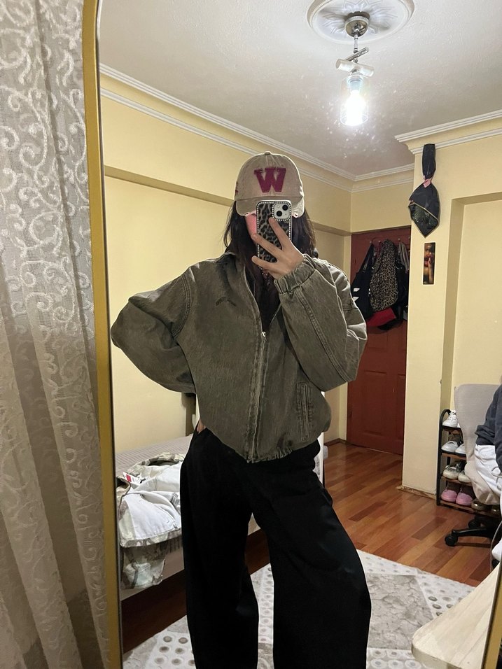 Kadın keten kumaştan, rahat kesim ve yüksek yakalı haki midi ceket. Uzun kollu, desen içermeyen sade tasarımıyla günlük sokak stiline uygun.