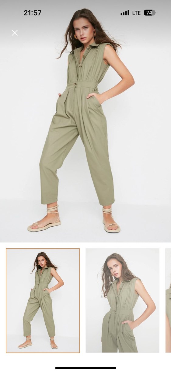 Kadın Haki Keten Midi Tulum