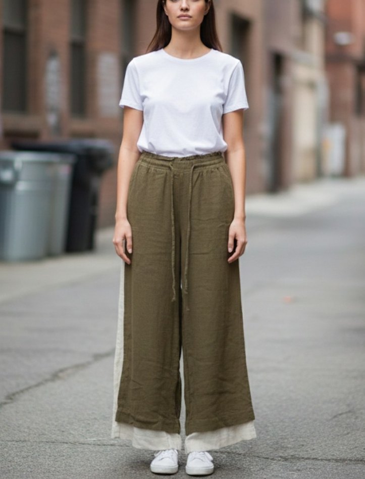 Kadın Haki Keten Salaş Midi Pantolon