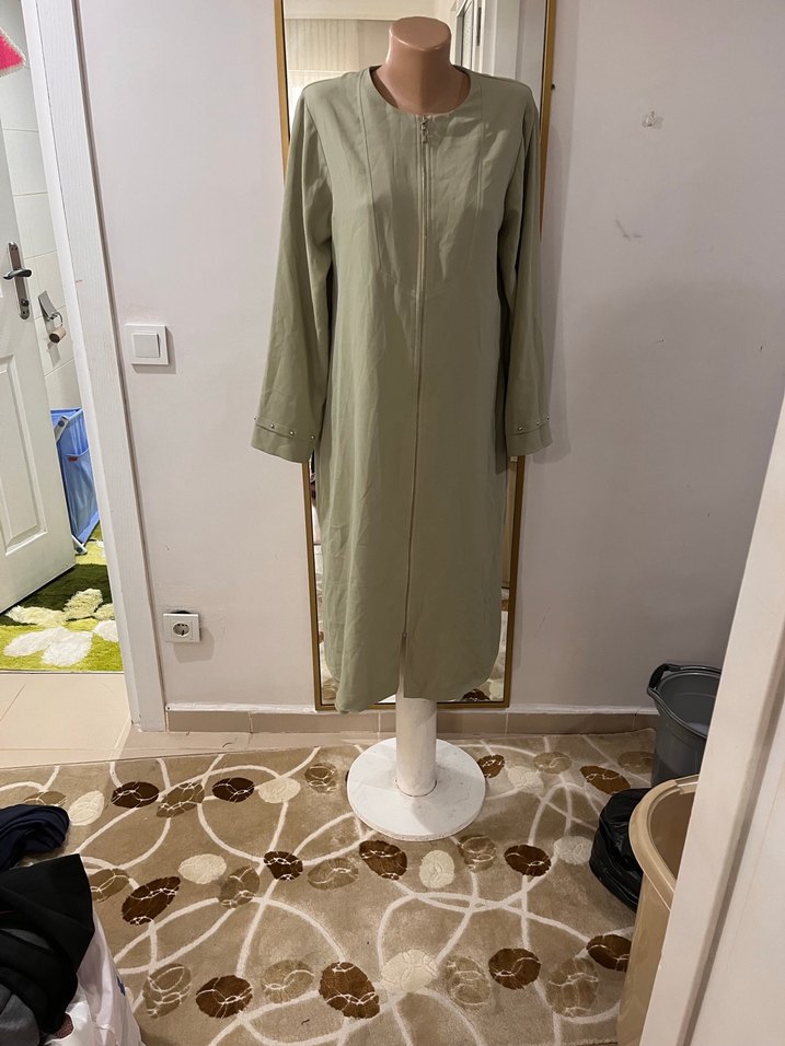 Kadınlar için keten kumaştan, haki renginde, uzun kollu ve yuvarlak yakalı, sade ve rahat kesimli uzun elbise. Günlük kullanıma uygun, zahmetsiz şıklık sunar.