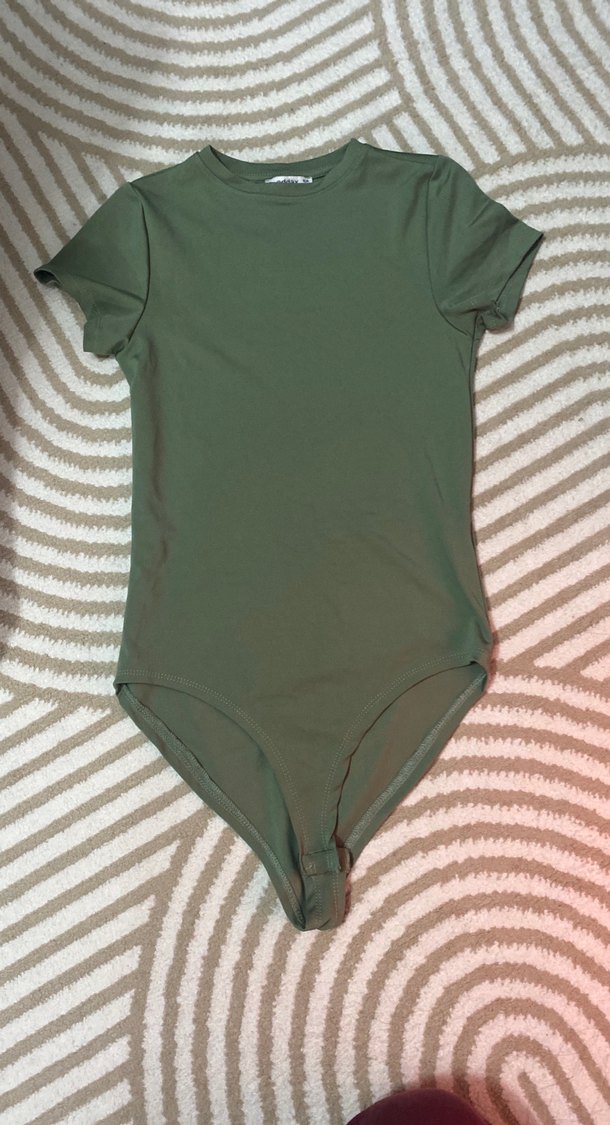 Kısa kollu, bisiklet yaka ve haki renkte, kadınlara özel vücuda oturan basic body. Pürüzsüz sentetik kumaştan, günlük kullanıma uygun rahat stil sunar.