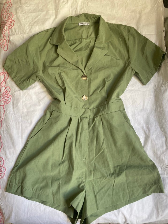 Kadın Haki Kısa Kollu Keten tulum