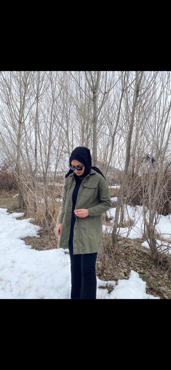 Kadınlar için haki midi uzun kollu parka, salaş kesim, kaplumbağa yaka ve kamuflaj desenli, yumuşak ve sıcak kumaşlı dış mekan sokak stili. S beden ancak oversize ürün 44 bedene kadar olur rahat bi şekilde
