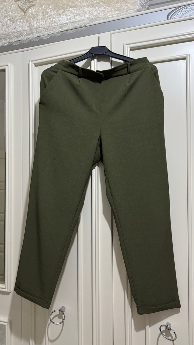 Kadın Haki Kumaş havuç Pantolon
