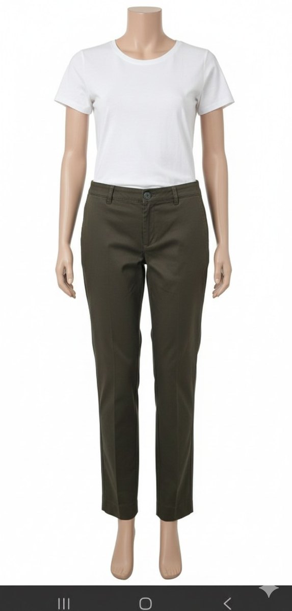 Kadınlar için normal boyda, regular fit Haki kumaş pantolon.Çok rahat esnek bir kumaş.Pantolonun arkası lastikli.Alana hayırlı olsun.