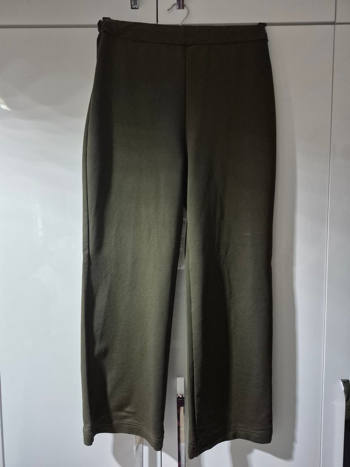 Kadın haki kumaş pantolon,desensizdir, ofis ve günlük sokak stiline uygundur. rahat ve trend athleisure tarzındadır.