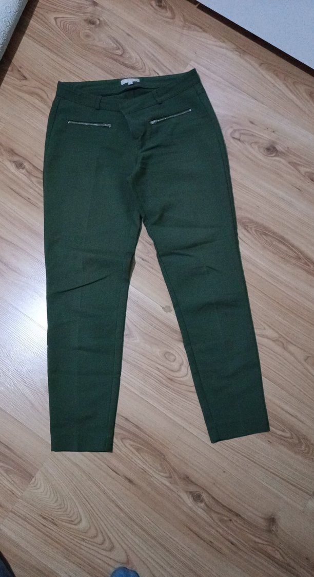 Kadın Haki Kumaş Pantolon Fermuarlı