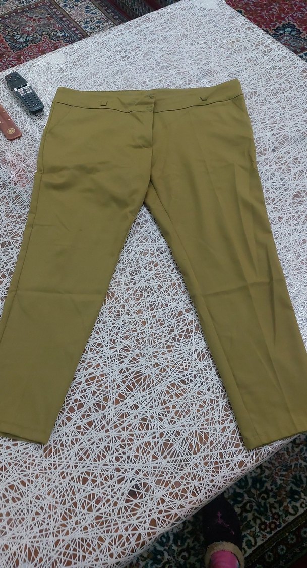 Kadınlara özel haki renkli, kemerli, midi boy kumaş pantolon. Sentetik kumaştan üretilmiş, rahat kesimiyle günlük sokak stiline uygun.
