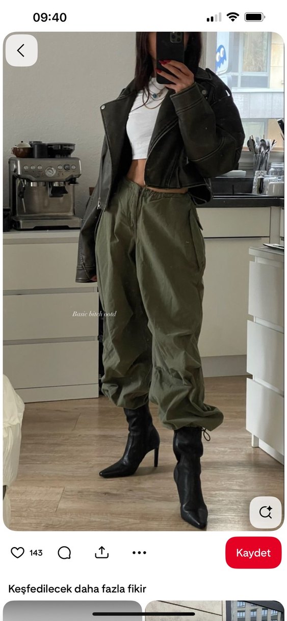 Kadınlar için haki renk, loose fit ve normal midi boyda kemerli pantolon. Deri malzeme ve kamuflaj desen ile günlük kullanım için uygundur.