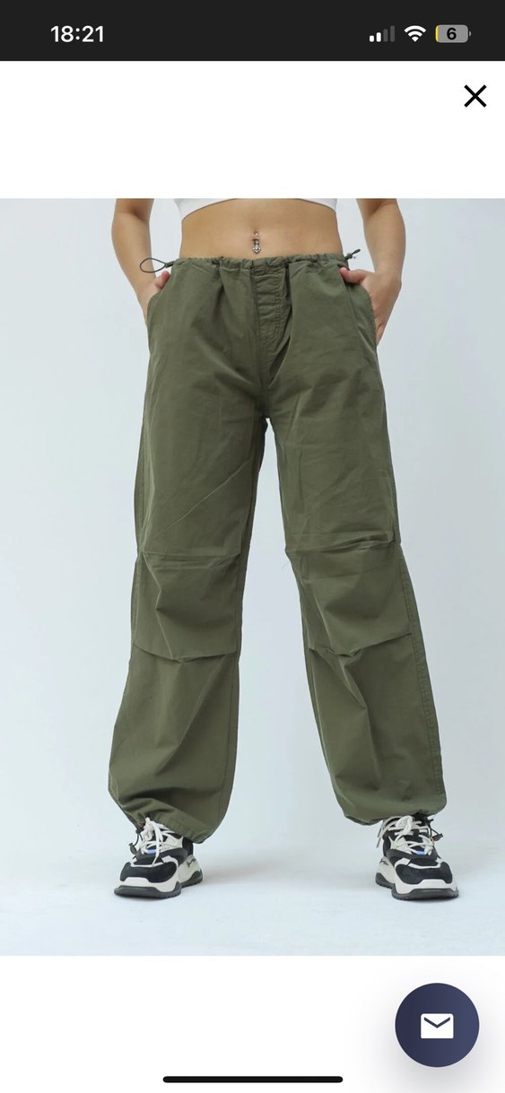Haki renkli, pamuk kumaştan, kamuflaj desenli ve loose fit kesime sahip kadın pantolon, rahat ve şık bir sokak tarzi sunar small beden marka temsilidir belden ayarlamali