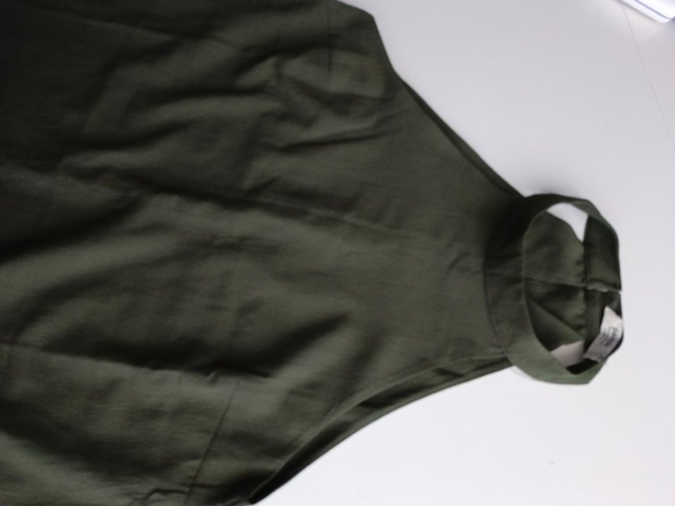 Haki renkli, minimalist tasarımlı, geniş kesim. Normal midi uzunluğa ve desen içermeyen düz bir yüzeye sahiptir. M / L beden uyumludur Yaz aylarında özellikle tatilde kurtarıcı ürün :)