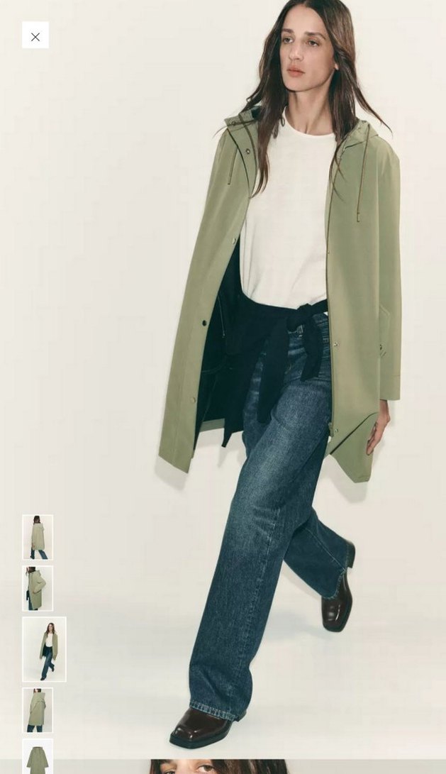 Kadınlar için haki renk midi uzunlukta, bol kesim denim yağmurluk. Uzun kollu ve kesik yakalı, günlük kullanıma uygun, zahmetsiz şıklık sunar. ️ürün hiç giyilmedi orjinal zara