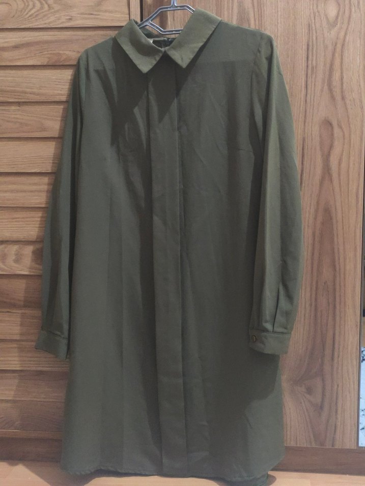 Kadın Haki Midi Keten Düğmeli Klasik gömlek