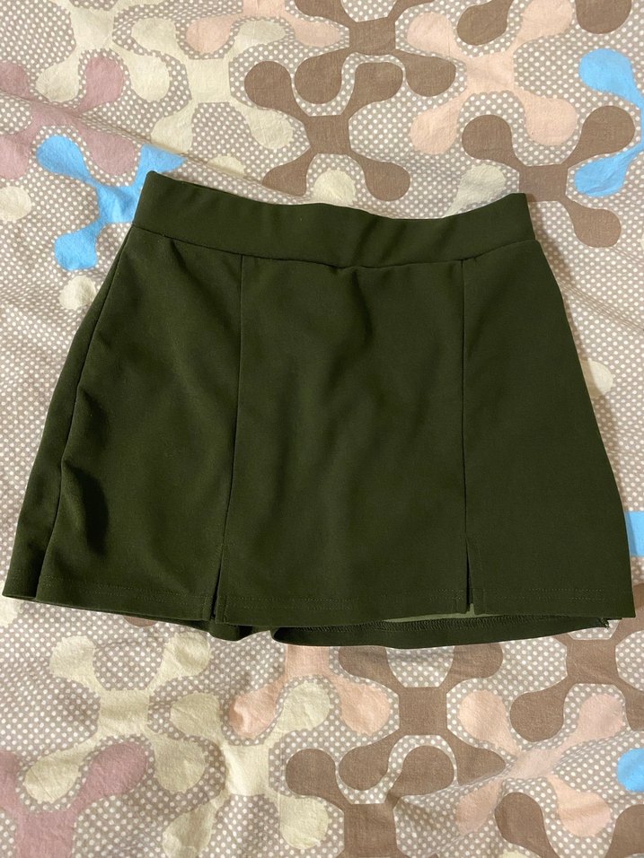 Kadın haki midi mini etek, düz ve oturan kesimiyle sokak stiline uygun, sentetik kumaştan rahat bir tasarıma sahip. defosu yok tertemiz