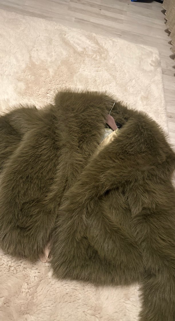 Kadın haki Midi Suni Kürk Kaban hiç kullanılmadı