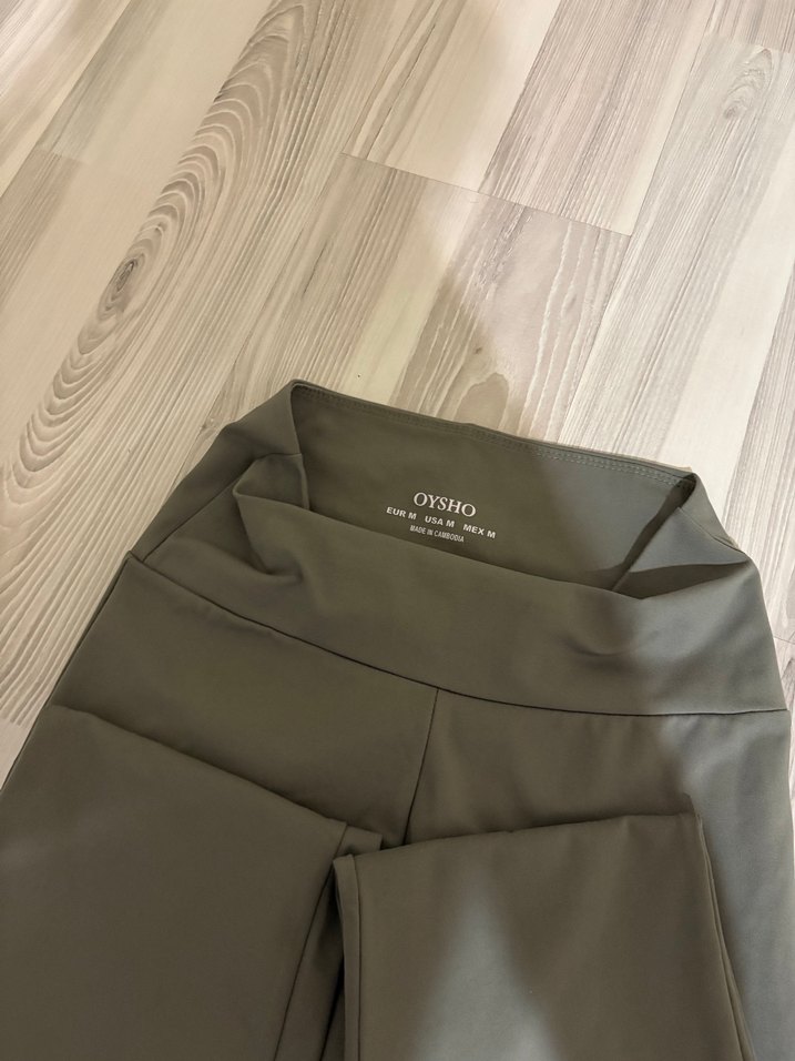 Oysho'dan haki renk ispanyol paça tayt, düz kesim ve pile detaylarıyla, yumuşak sentetik kumaştan üretilmiştir, günlük kullanım için uygundur. ♀️