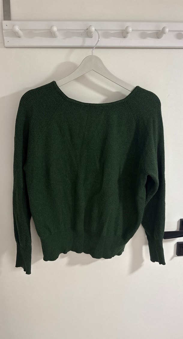 Kadınlar için koyu yeşil renkli, örgü yün kumaştan, yuvarlak yakalı ve uzun kollu kazak. Rahat kesimi ve normal boyu ile günlük kullanıma uygundur. Sade ve konforlu tasarım.