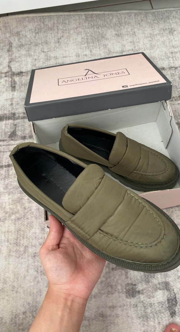 Haki renkli platform topuklu, kauçuk tabanlı loafer ayakkabılar. Desensiz, sokak modasına uygun, günlük kullanıma uygun rahat ve şık. Trendyoldan aldım sadece bi kere giydim kombinleyemediğim için giyemiyorum hiç bir defosu yok ilgilenenlere yardımcı olurum