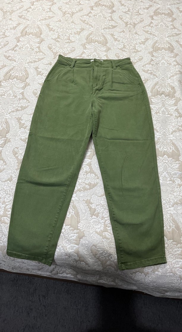 Haki renk, pamuk kumaştan, rahat kesim ve normal boyda kadın pantolon. Günlük kullanım için uygun, zahmetsiz şıklık sunar. 38 bedene de çok rahat oluyor