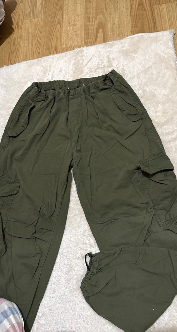 Haki renkte, rahat kesim, midi boy kumaş pantolon. Lastikli bel ve yan cepleriyle dış mekan kullanımına uygun, yumuşak ve sıcak dokusu rahatlık sağlar.
