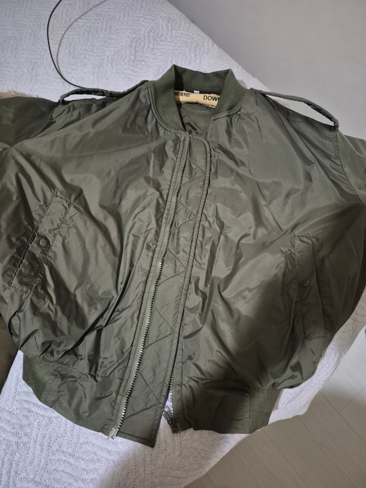Kadınlar için haki renginde,fermuarlı ve salaş kesim uzun kollu ceket. Sentetik kumaştan, midi boyda, günlük uygun iyi durumda az kullanılmış pijamama bakmayın lütfenn İnternet butiğinden almıştım rengi efsane ama spor giymediğim için satıyorum