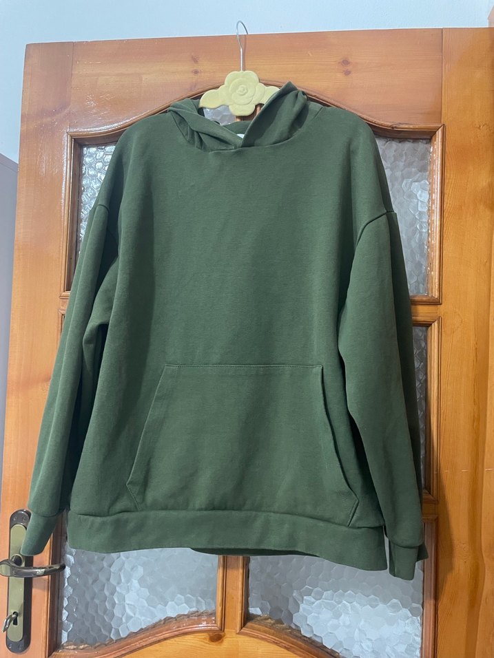 Kadın Haki Renk Kapüşonlu Salaş Sweatshirt