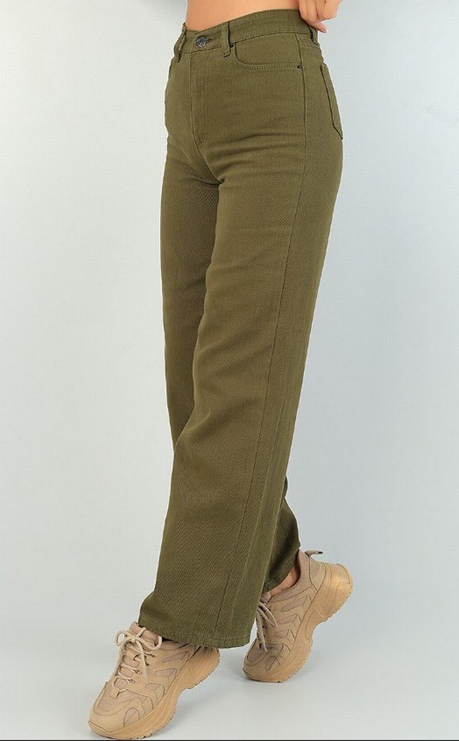 Kadın haki renkte, midi boy, regular fit kesime sahip, düz desenli, sentetik kumaştan yapılmış jean. Günlük kullanıma uygun, zahmetsiz şıklık sunar.