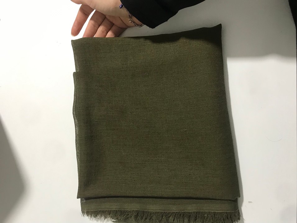 Kadınlar için parlak haki renkte, keten kumaştan drapeli tasarıma sahip, yumuşak dokulu ve ince püsküllü kenarları olan şal. İlan açtırın yardımcı olabiliyim kızlar