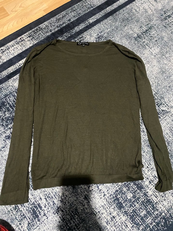 Kadın Haki Salaş Keten Uzun Kollu Kazak
