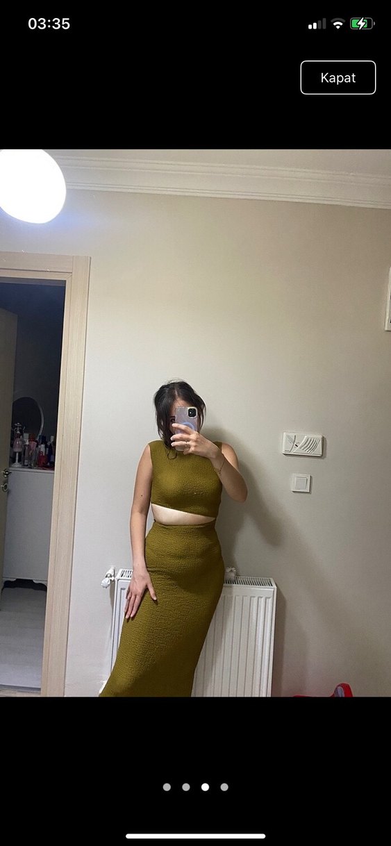 Bu kadın haki straplez midi elbise, vücuda oturan kesimi ve kolsuz tasarımıyla yumuşak sentetik kumaştan üretilmiştir. Minimalist tarzıyla günlük kullanım için zahmetsiz şıklık sunar.
