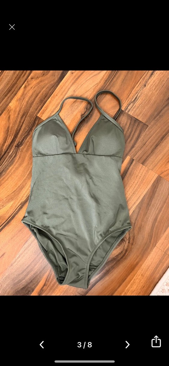 Kadınlar için haki renkte, strappy askılı ve bohem tarzda, normal boyda, şık ve rahat bir mayo.