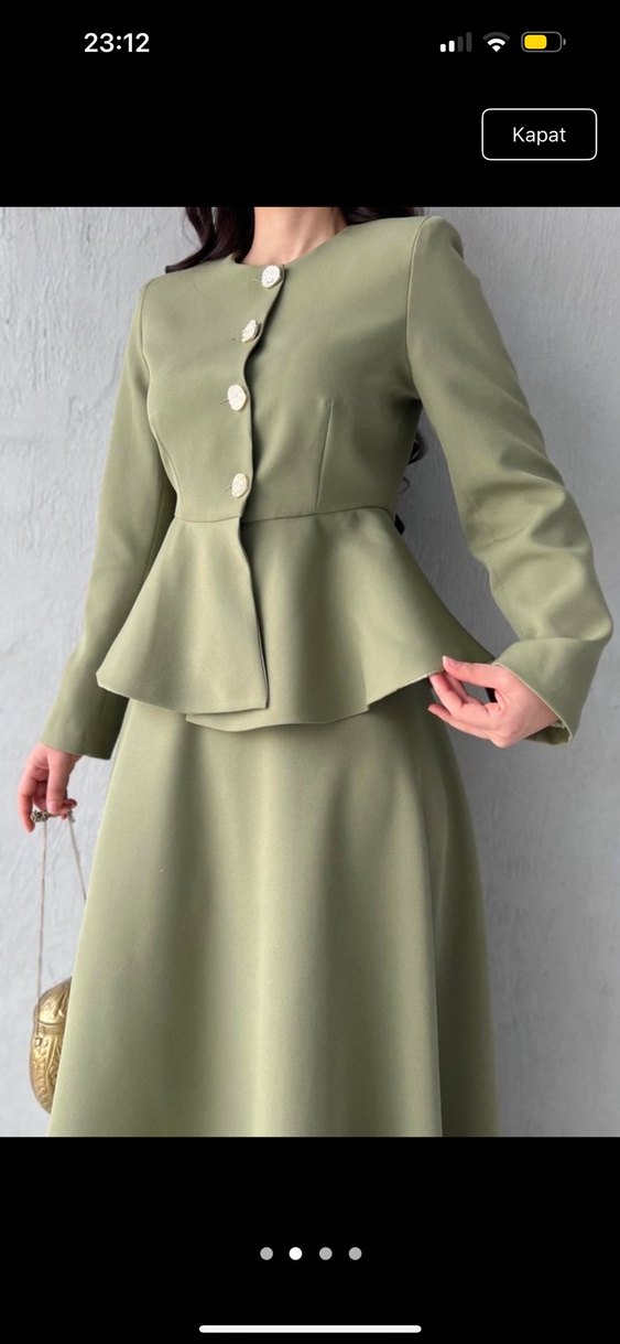 Kadın haki uzun elbise, düğmeli ve kesik yaka detaylıdır. Yumuşak sentetik kumaştan, uzun kollu ve regular fit olup ofis için uygundur. Minimalist ve modern klasik tarzda pastel renktedir.