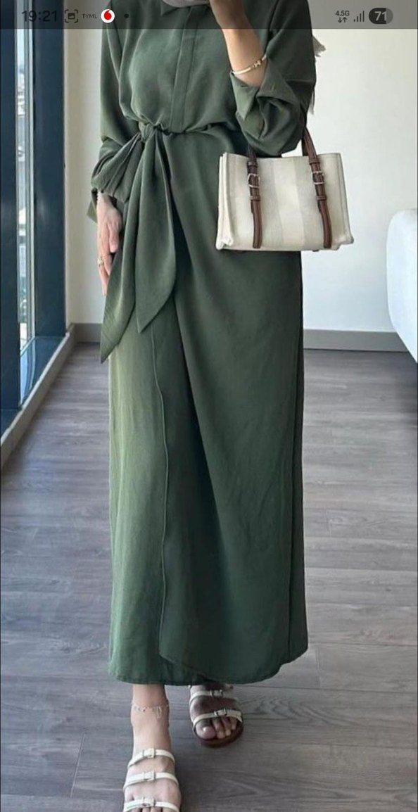 Haki renkte, drapeli uzun elbise, yakasında kesik detay ve ince askılarla sade bir görünüm sunar. Rahat kesimi ve sentetik kumaşıyla günlük kullanıma uygundur. Zarif ve akıcı bir duruşa sahip, kuşak detaylı uzun elbise/tunik. Kumaşı dökümlü ve rahat yapıda, gün boyu konfor sağlıyor. Belindeki bağlama detayı hem vücut hatlarını toparlıyor hem de şık bir görünüm katıyor. Renk canlı ve fotoğraftakiyle birebir. Temiz, deformesiz ve sadece birkaç kez kullanıldı. Hem günlük hem de kombinlenince şık bir parça olarak çok kullanışlı. ✨