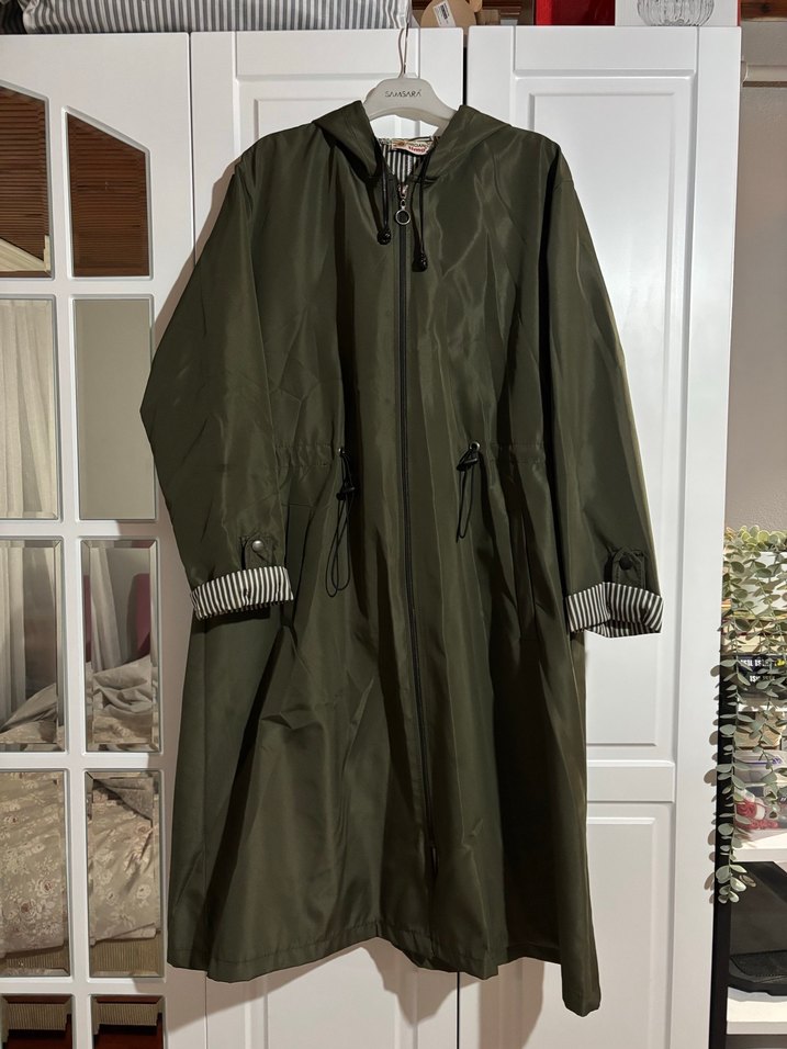 Kadın Haki Uzun Fermuarlı Yağmurluk