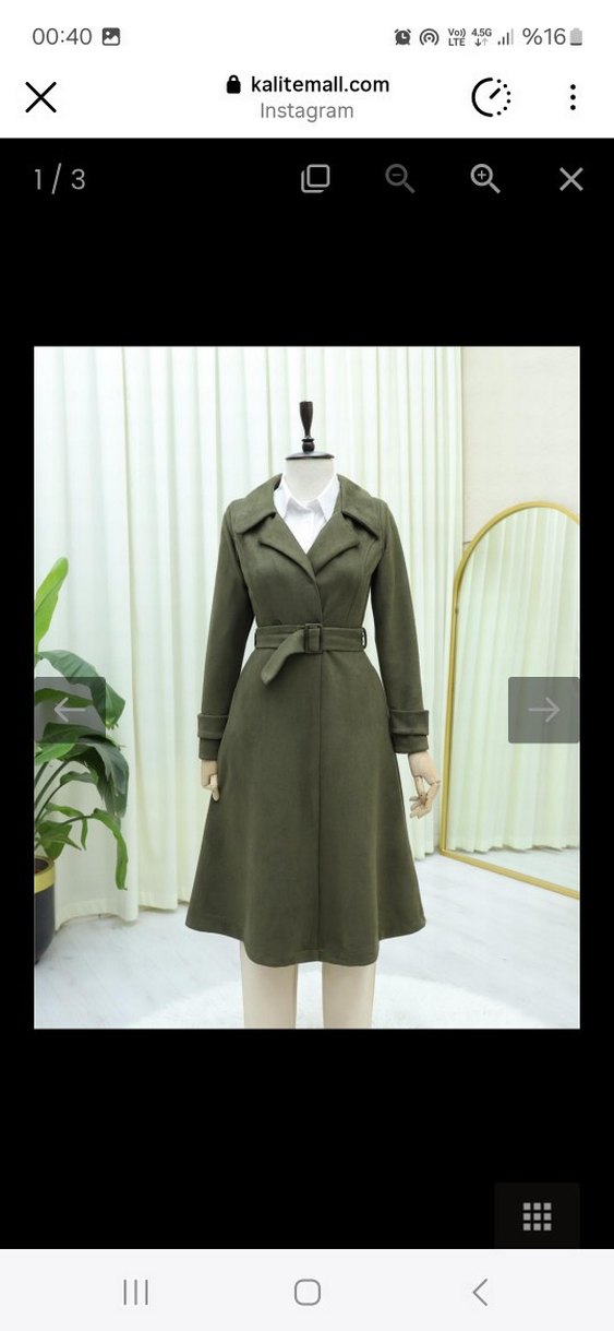 Haki renkli uzun trençkot, modern klasik görünüm için kemerli ve kesimli yakaya sahiptir. Uzun kollu, rahat kesim ve yumuşak, sıcak kumaştan üretilmiştir. Minimalist ve şık tasarım.