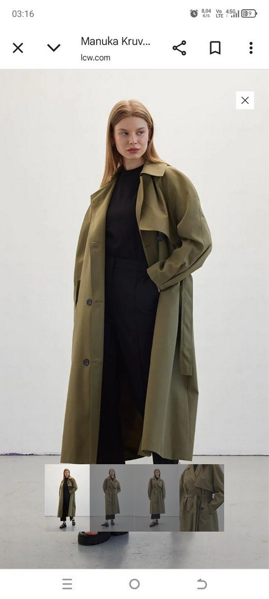 Haki renkli, uzun kesim ve salaş fitli bu trençkot, notched lapel yakaya sahip. Sentetik kumaştan üretilmiş, minimalist ve gündelik şıklık sunar.