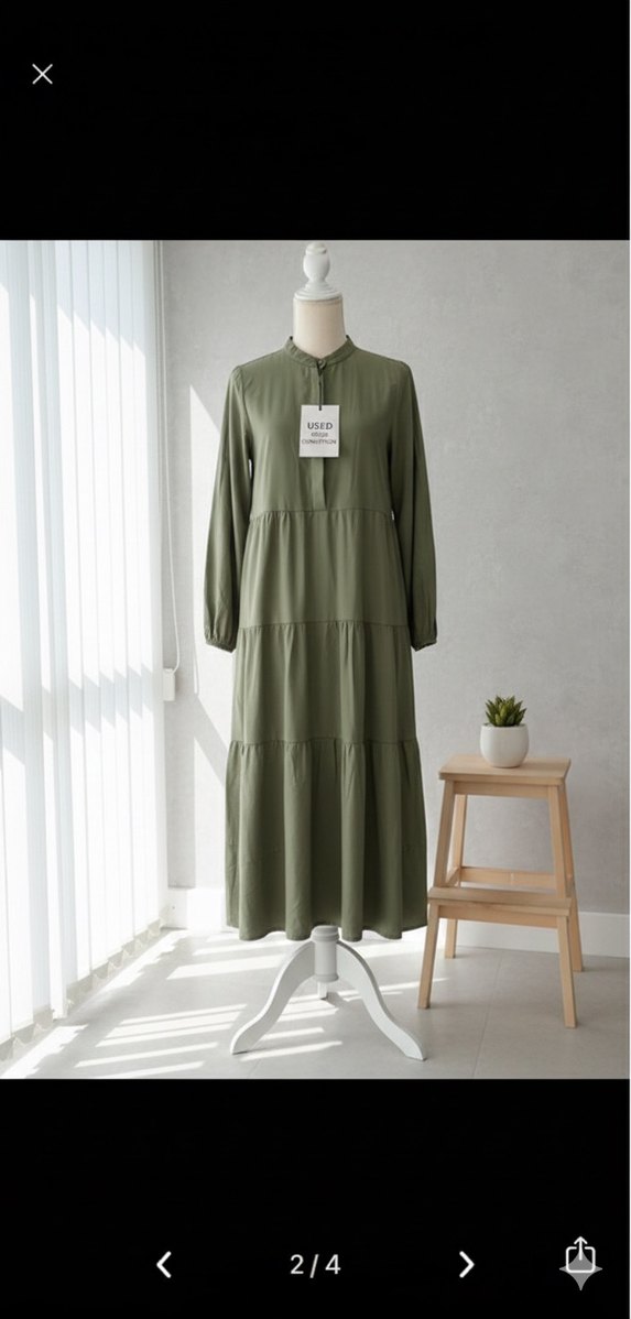 Kadın Haki Uzun Keten Elbise