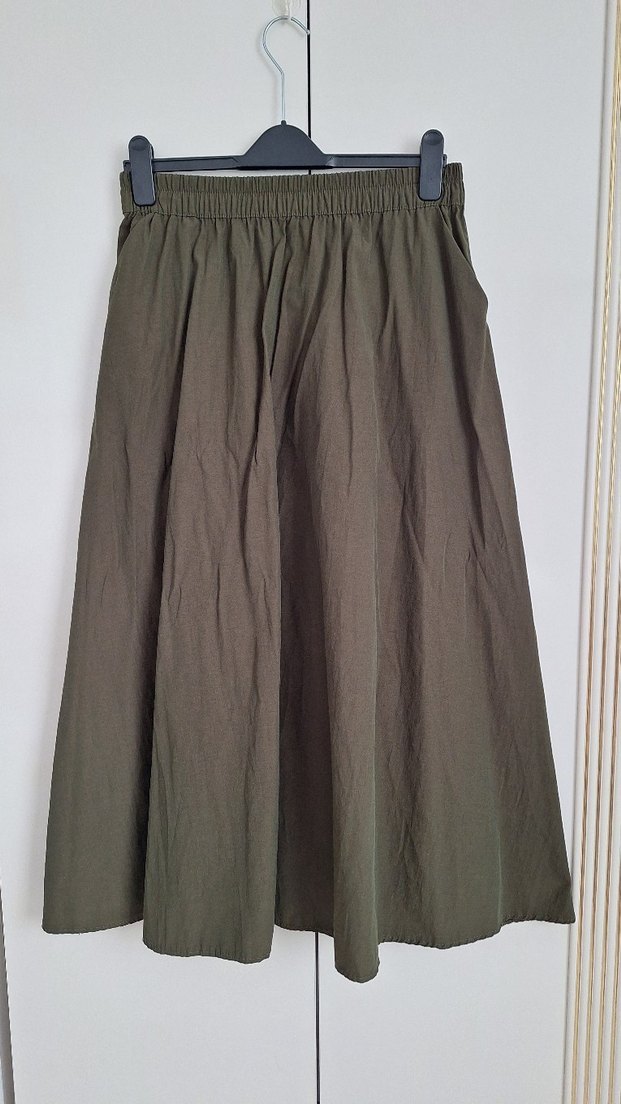 Bol kesim, uzun haki keten etek, drapeli tasarımı ve elastik bel bandıyla rahatlık sağlar. Minimalist ve bohem tarzda, günlük kullanıma uygun. Etek boy 92 cm, en lastiği açılmamış 32 cm açılmış 50 cm.