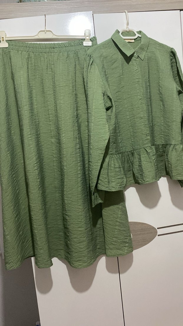 Kadınlar için keten kumaştan, bol kesim ve uzun kollu haki renkli, pilili ve bisiklet yaka uzun tunik. Günlük kullanım için uygundur.