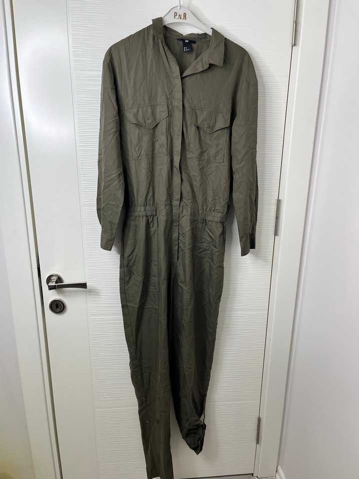 Kadın haki uzun keten tulum, uzun kollu ve kemerli bel detayına sahiptir. Yumuşak keten kumaştan, günlük sokak stiline uygun rahat kesimdir. Düz ve cepli tasarıma sahiptir. Arkasında leke var başka ürün alana isteyene ücretesz koyarım