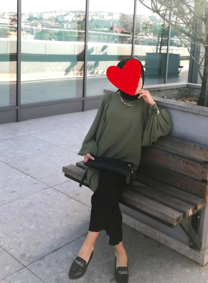 Kadın Haki Uzun Kollu Bol Kesim Tunik